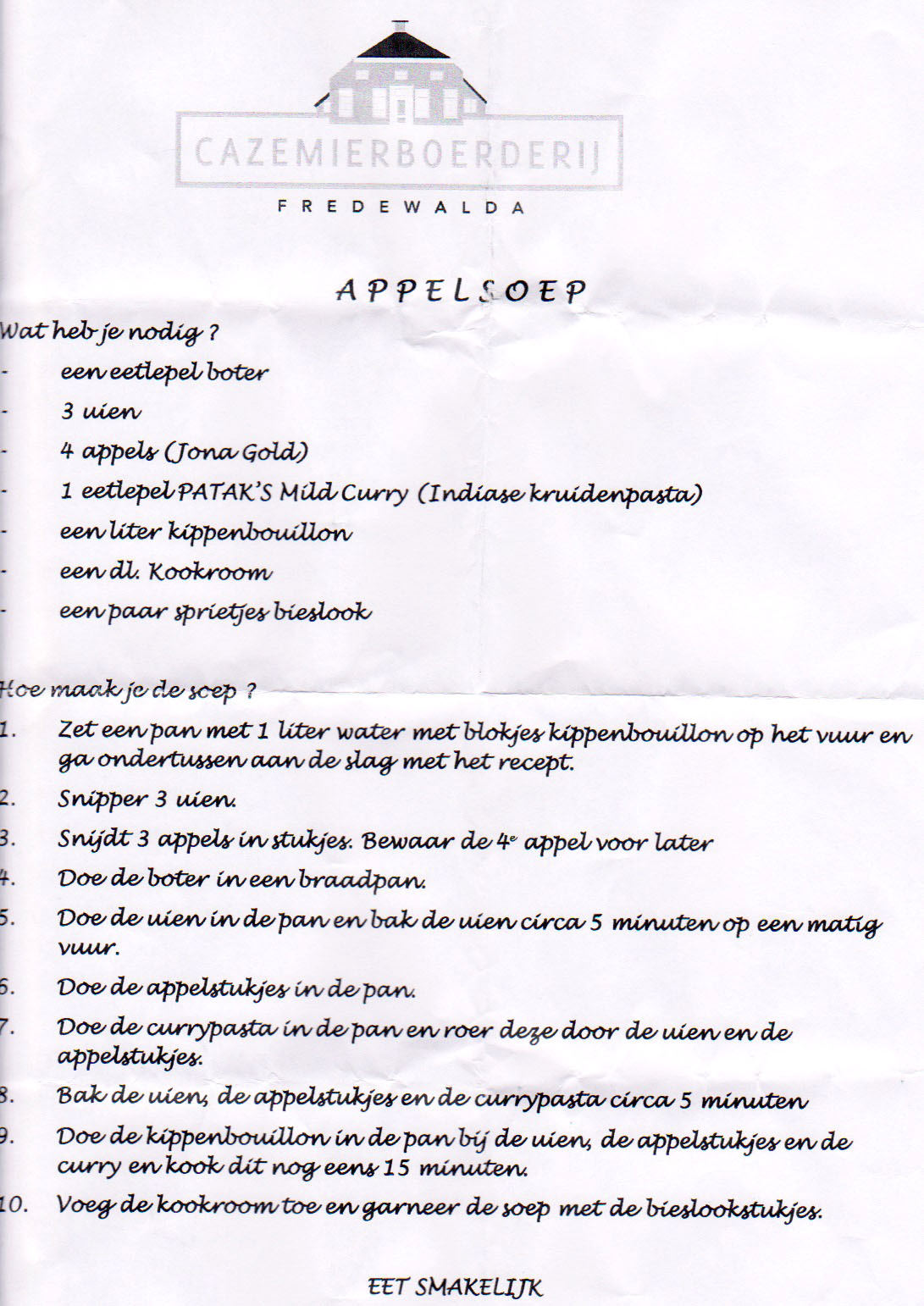 Het was een gezellige drukte in de boerderij. De imker vertelde enthousiast over zijn bijen en verkocht verrukkelijke honing. Ook erg lekker was de appelsoep, waarvan menigeen met enige reserve proefde, maar daarna mét het recept de deur uit ging.
